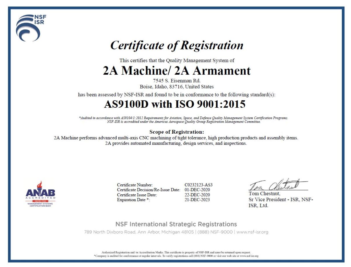 2A|Machine is an ISO 9001 and AS 9100 certified advanced manufacturing machining shop for the